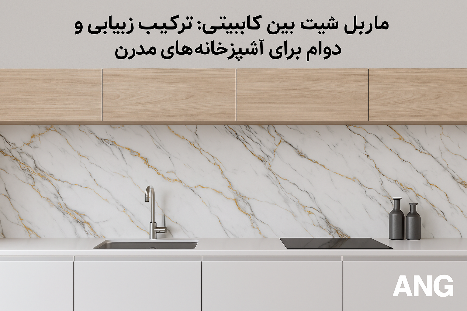 ماربل شیت بین کابینتی با طراحی مدرن، نظافت آسان، مقاومت بالا، و گارانتی ۵ ساله شرکت ANG، انتخابی شیک و کاربردی برای آشپزخانههای امروزی.